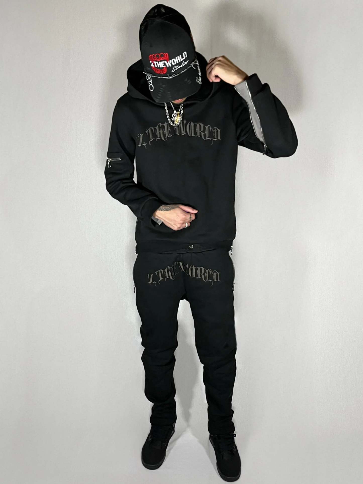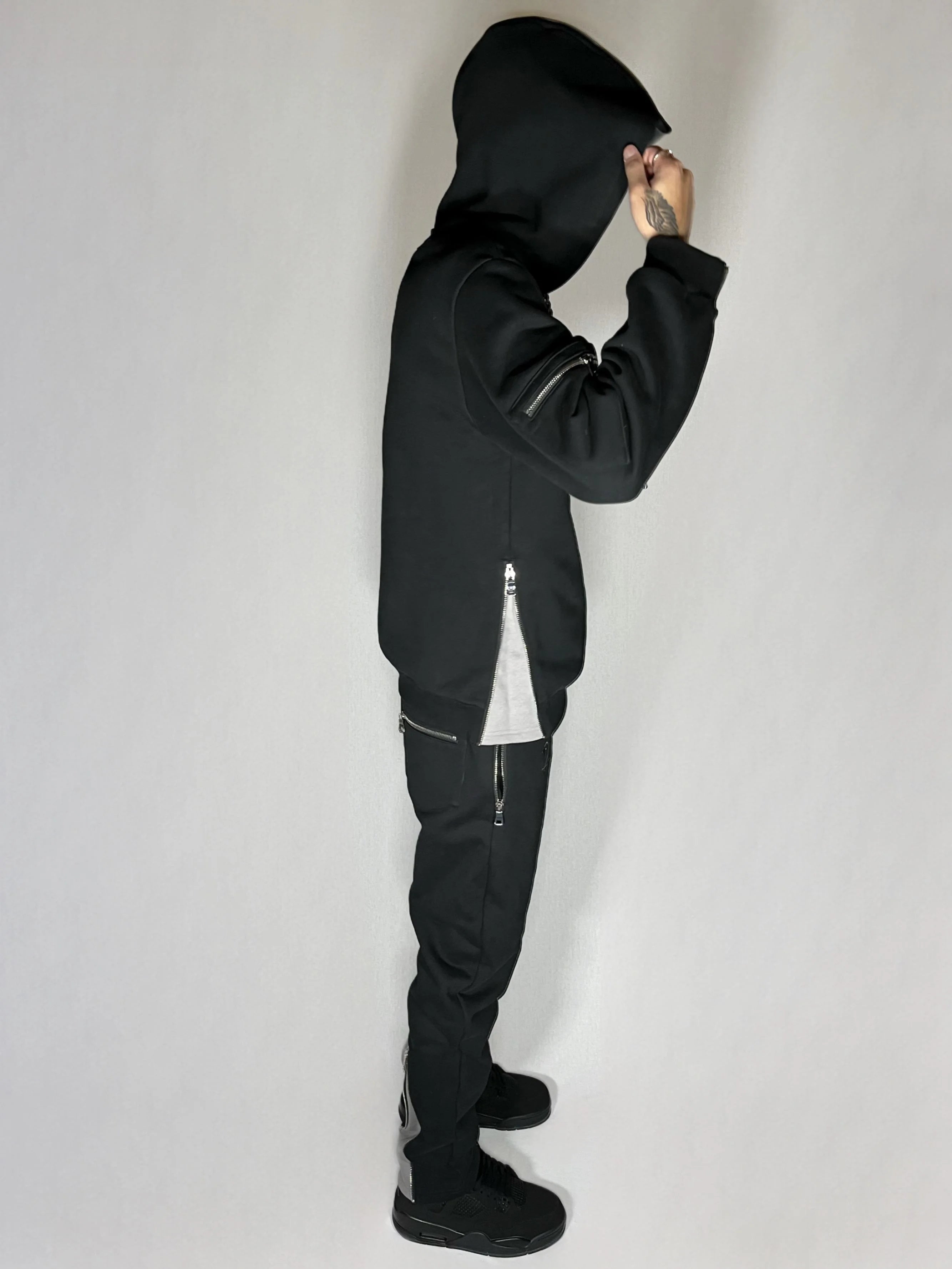 Material: 100% Italian cotton, 500 GSMEmbroidery: French stitch printZippers: 12 durable N925 Silver zippersDesign: Bold contrasts, adaptable zip styleSizing: True to size fit.