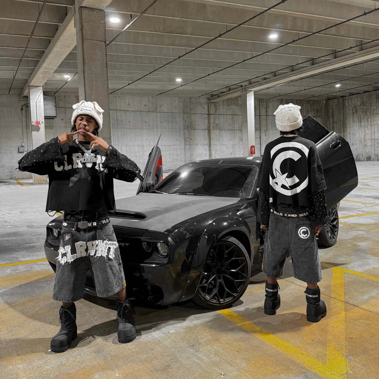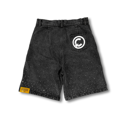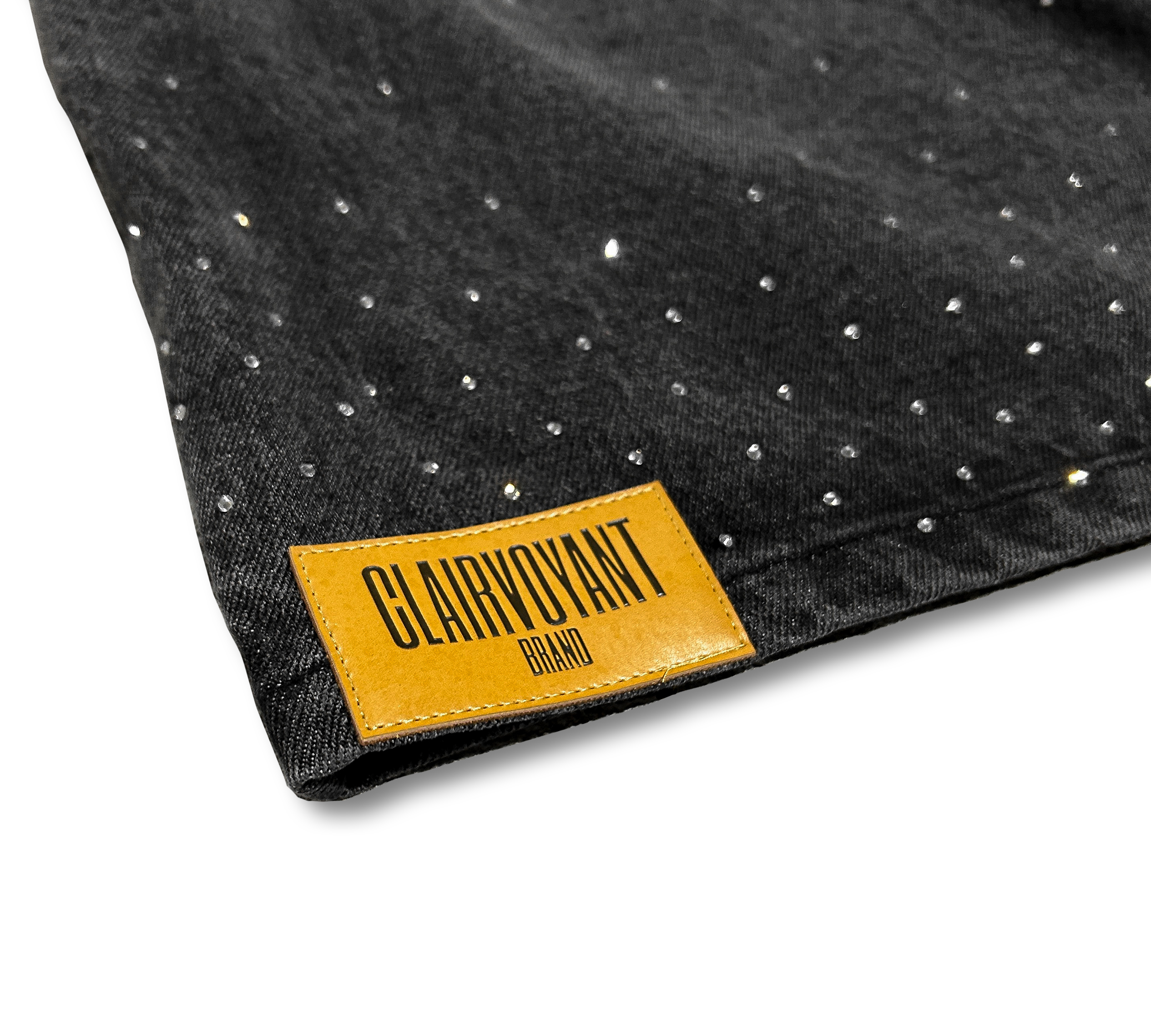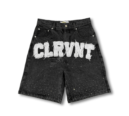 Experience luxury and style with CLRVNT Denim Shorts. Crafted from high quality denim fabric, these shorts are durable and comfortable. Covered with rhinestones, they add a touch of elegance and versatility to your wardrobe. Elevate your fashion game with these eye-catching shorts.