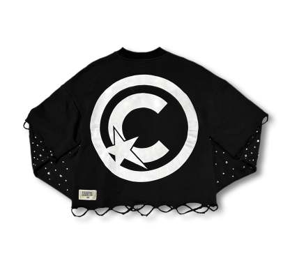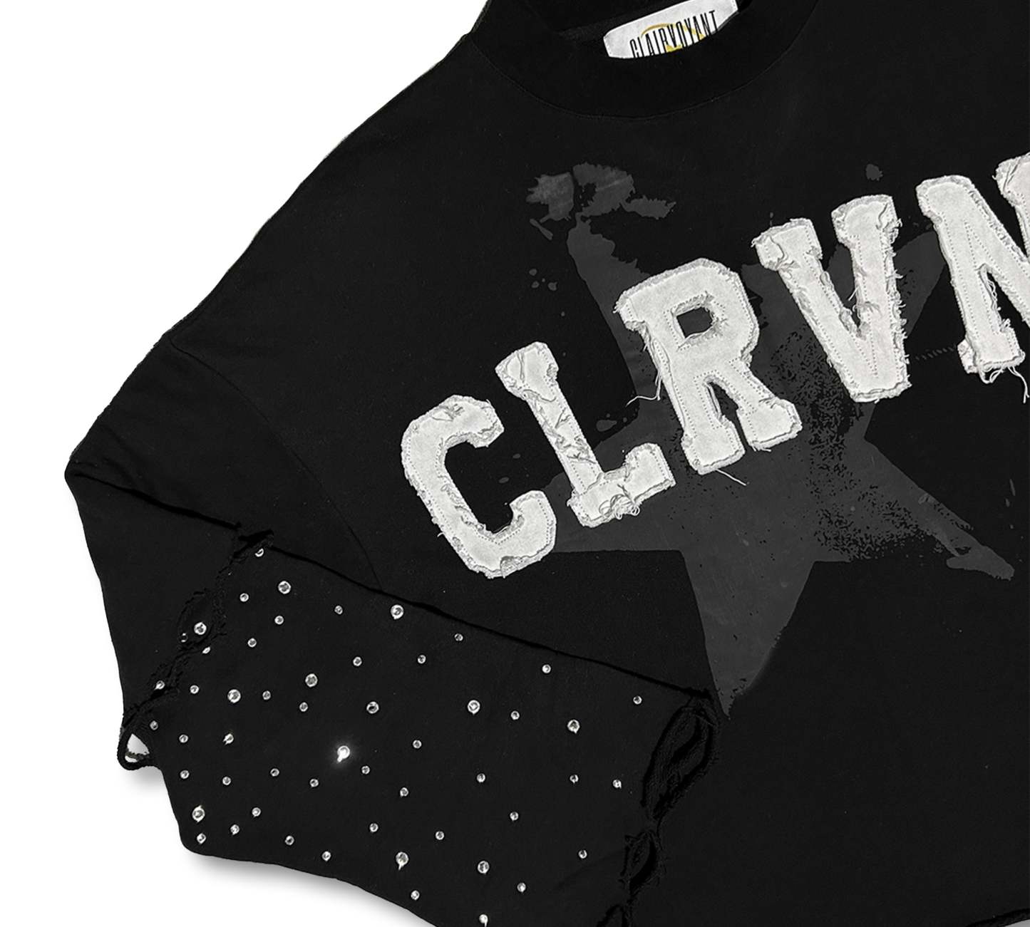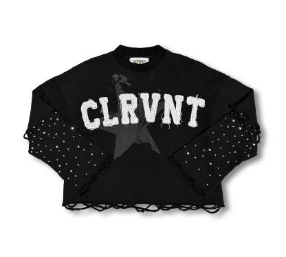 Crafted for ultimate comfort and style, the CLRVNT Long Sleeve Shirt is made with heavyweight French terry cotton. Along with its durability, this shirt features elegant rhinestones embedded on the sleeves, adding a touch of sophistication to any outfit. Elevate your wardrobe with this luxurious and versatile piece.