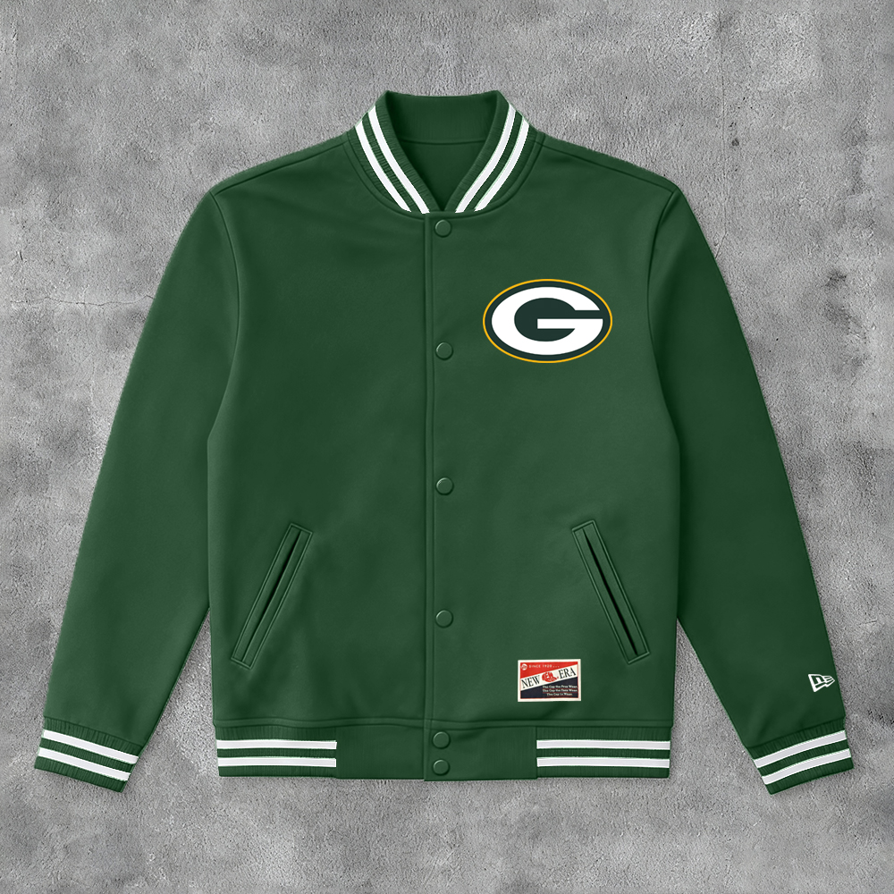 Casual Packers Print Long Sleeve Baseball Jacket