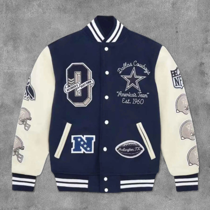 Cowboys Print Long Sleeve Baseball Jacket