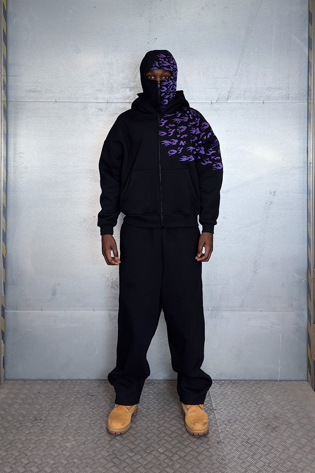 Oversize Zip Hoodie mit Stickdesign und integrierter Balaclava Maske