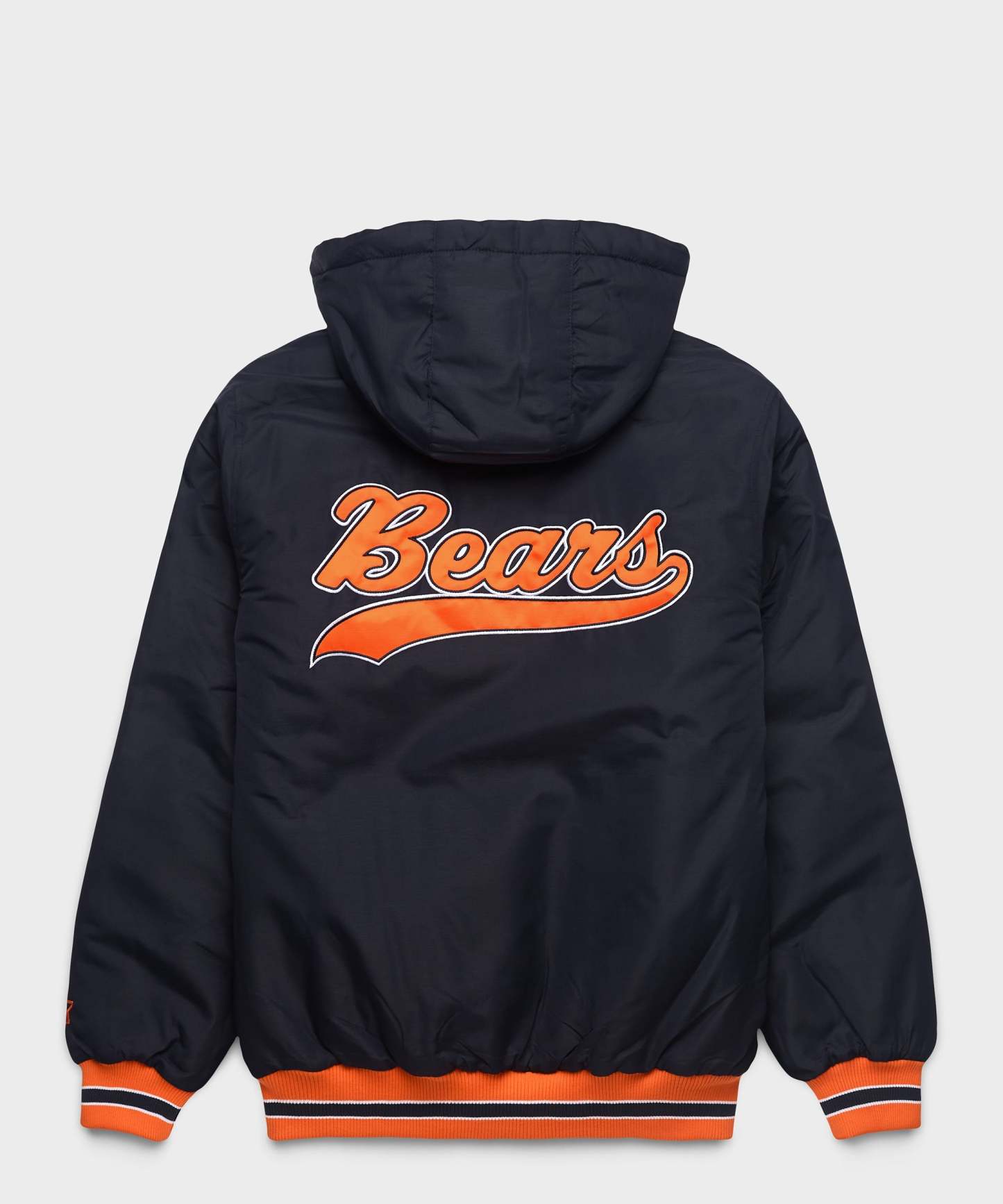 Keep out the cold with the HOMAGE X Starter Bears Parka Jacket: cozy hood with adjustable toggles, luxe loft polyfill for extra warmth, hand warmer pockets, team color rib-knit cuffs and hem, and a weather-proof exterior. Go Bears!