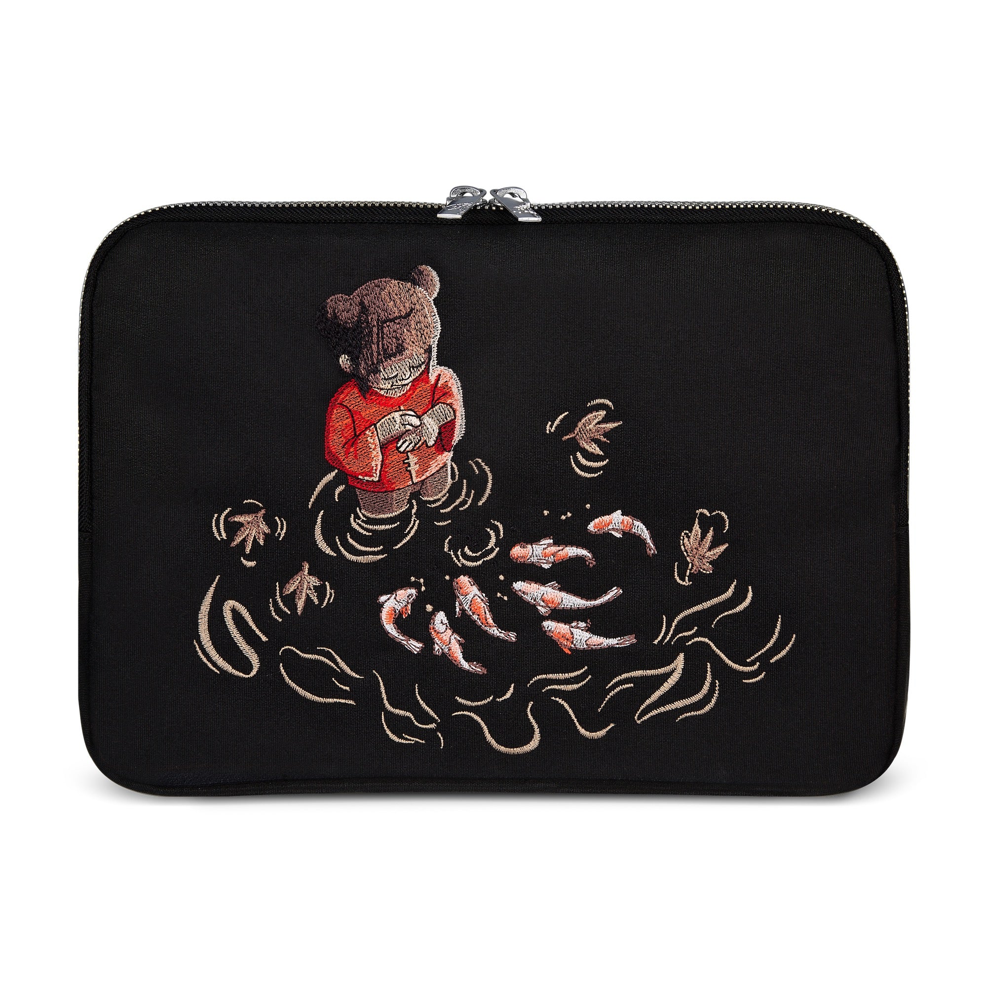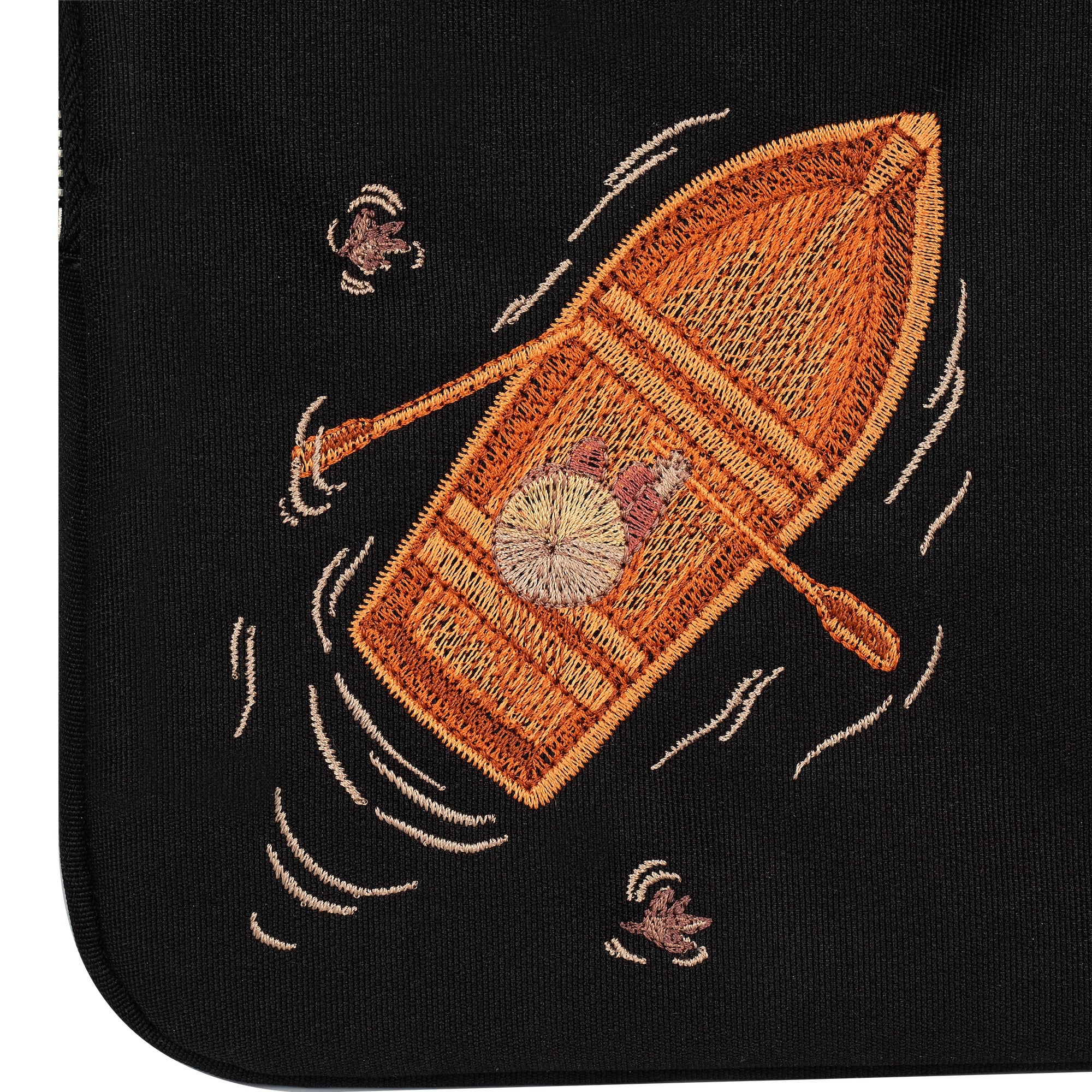 canvas/ heavy custom zippers/ embroidered front design/ only fits up to 13 inch macbooks(14 inch too since they are the same size)