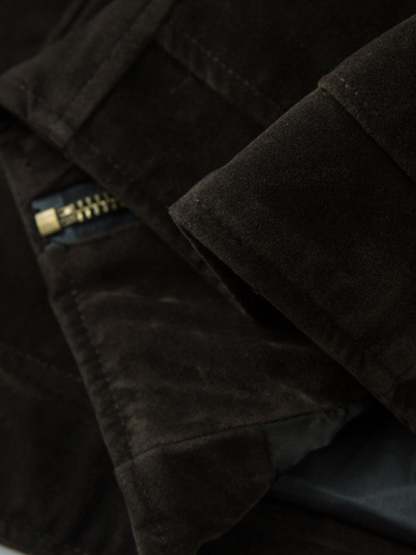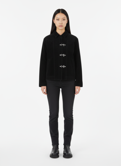 • Design Elements: Classic toggle button closure, two front pockets, sleek collar design