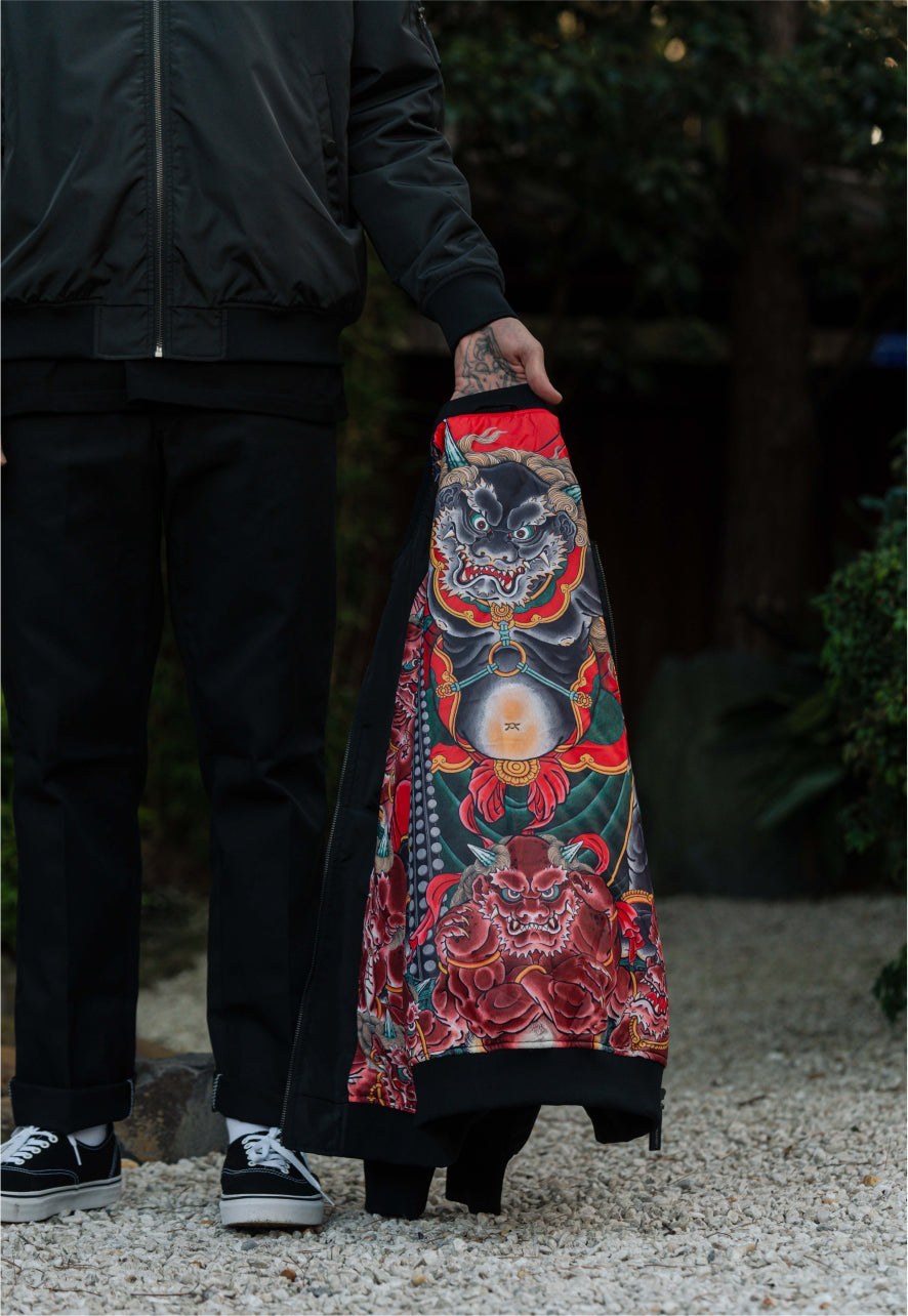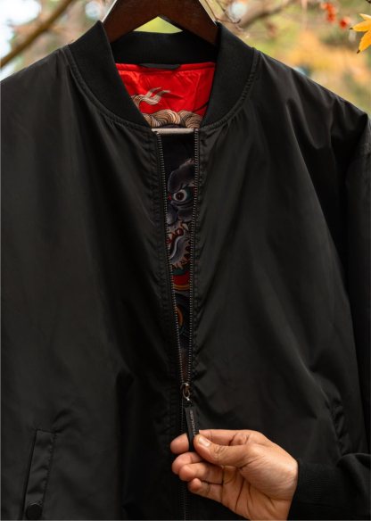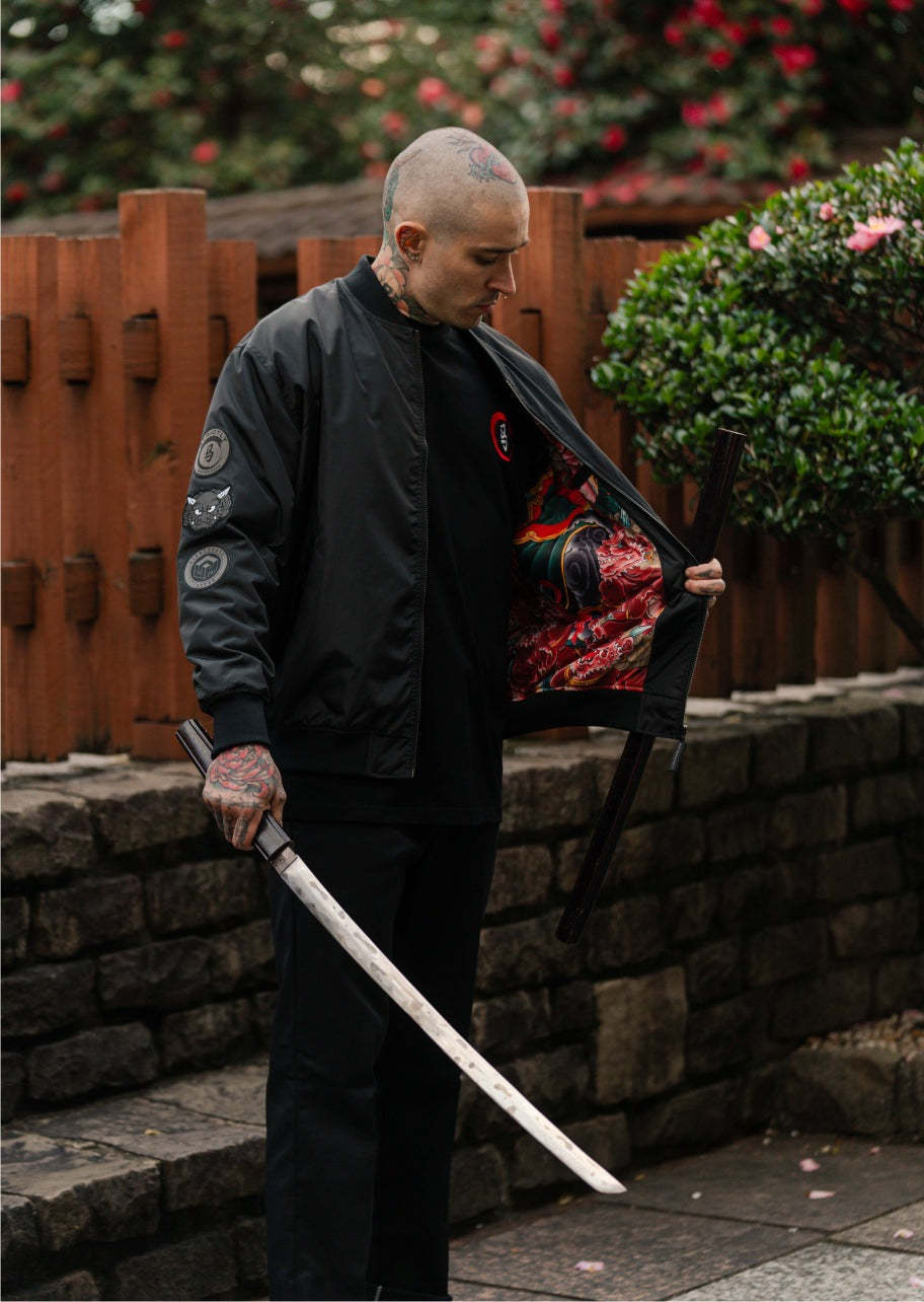Designed by Alex RustyRelax Fit BomberNylon OuterPolyfibre FillingFront Zip ClosureSleeve Zip Pocket Embroidered Patch DetailsFull Shuten Doji Inner Print*Not designed to be worn reversible