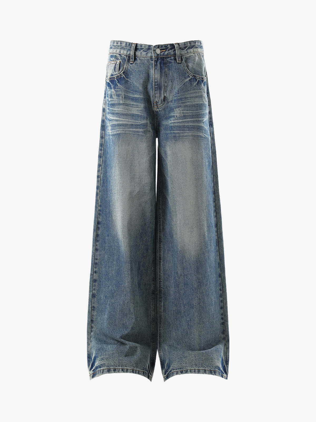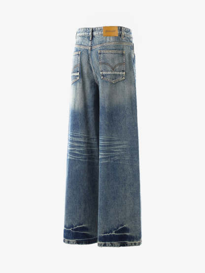 • Design Elements: Distressed details, wide-leg silhouette, classic five-pocket design