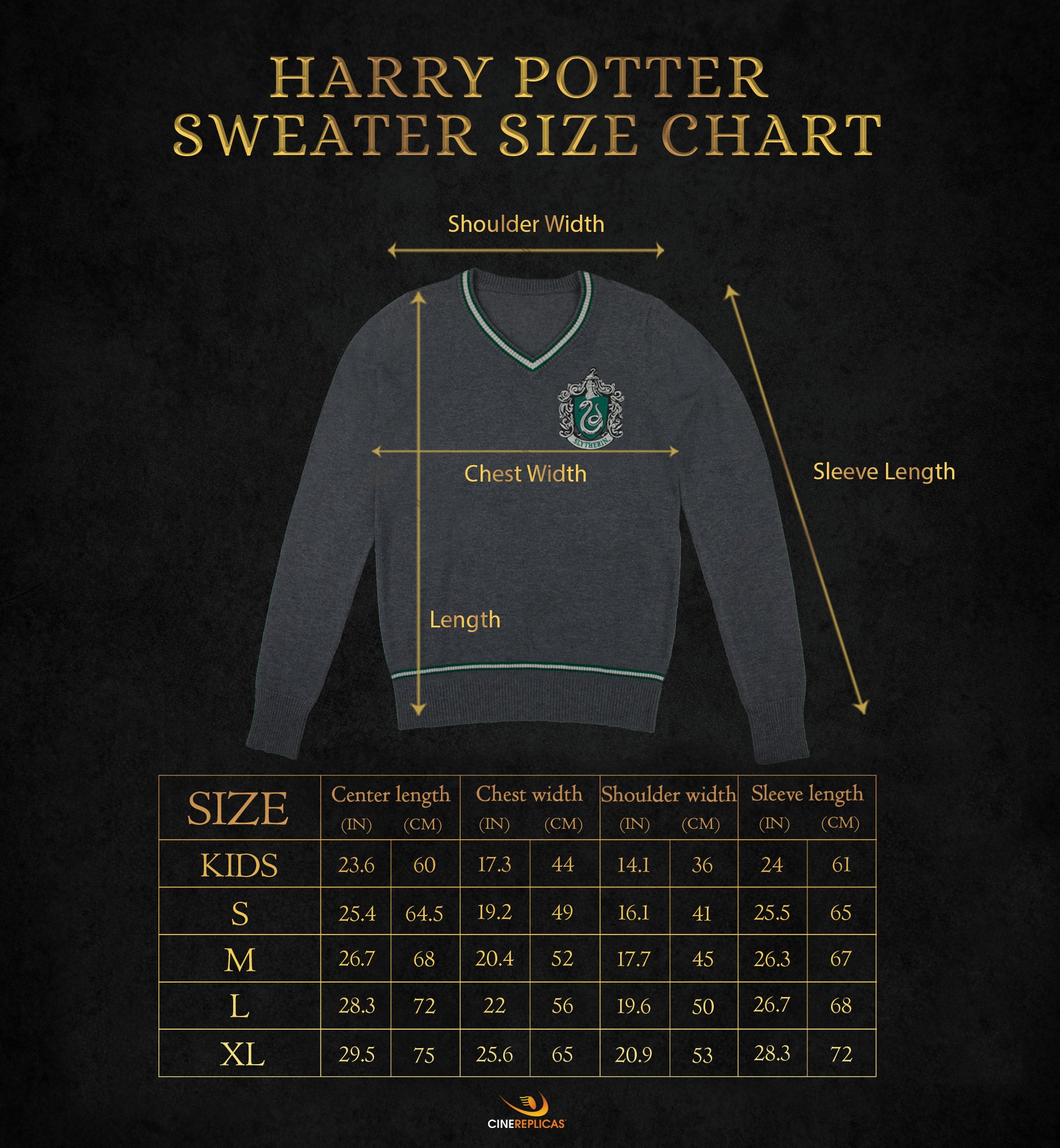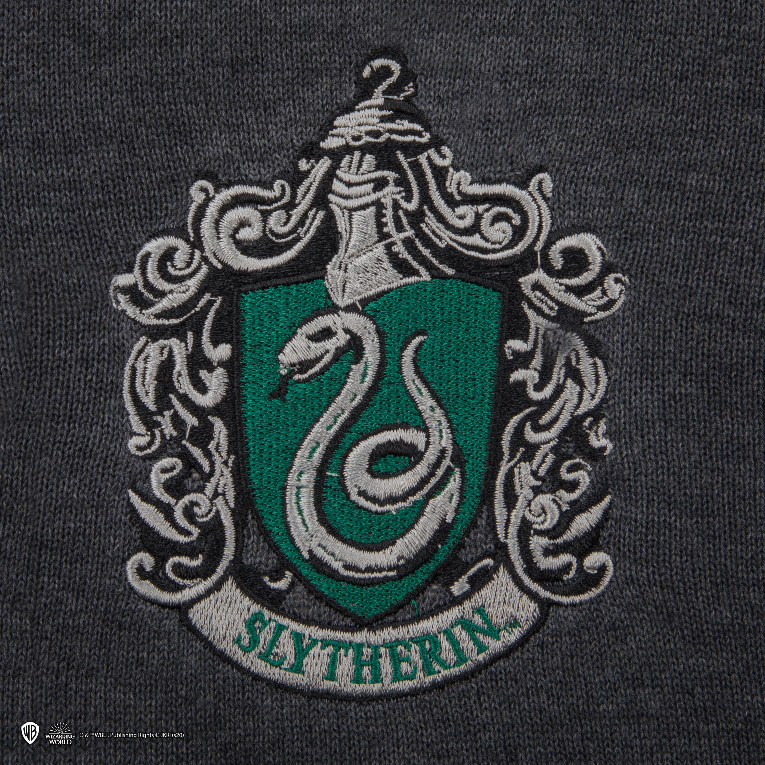 Slytherin sweater as seen in the Harry Potter film series. Display your House pride with this V-neck sweater and its quality embroidered Slytherin House crest. Made of soft-touch knit, it's easy to match your day-to-day clothes or to wear with your full Slytherin uniform.