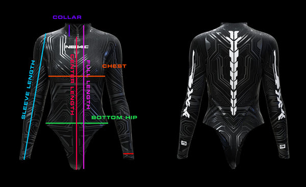 We produced this form fitting cyberpunk bodysuit to encapsulate the essence of Neo-Tribalism. Meant to function as an underlayer with joggers, skirts, cargos or can work as a solo piece.
