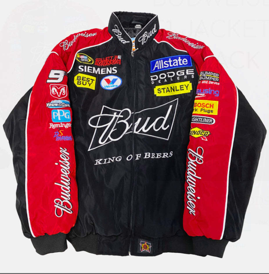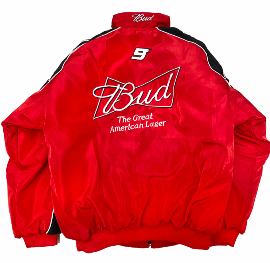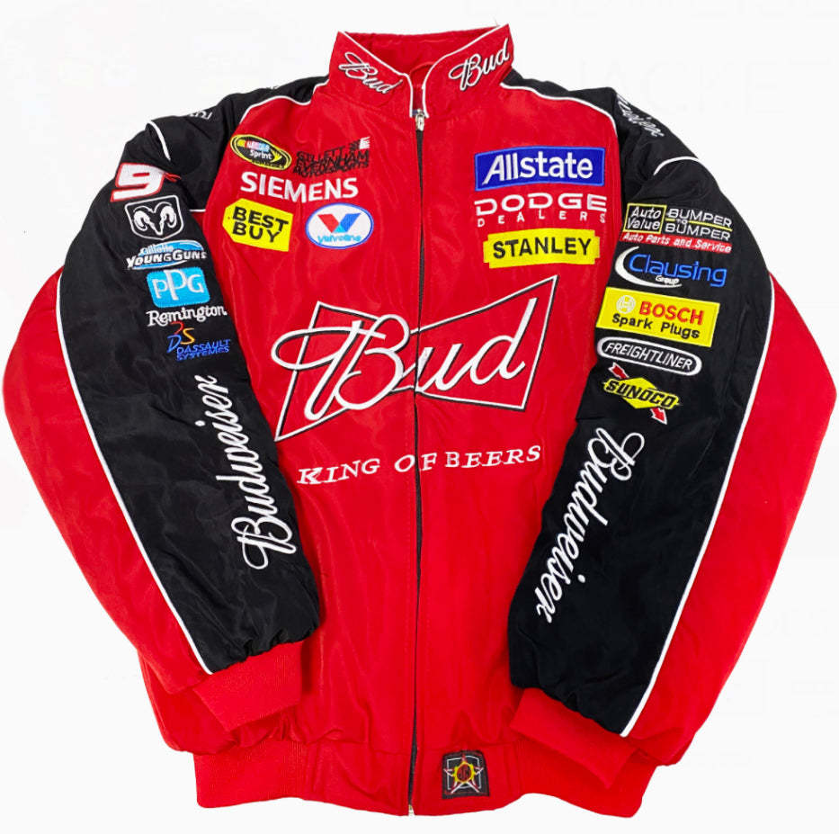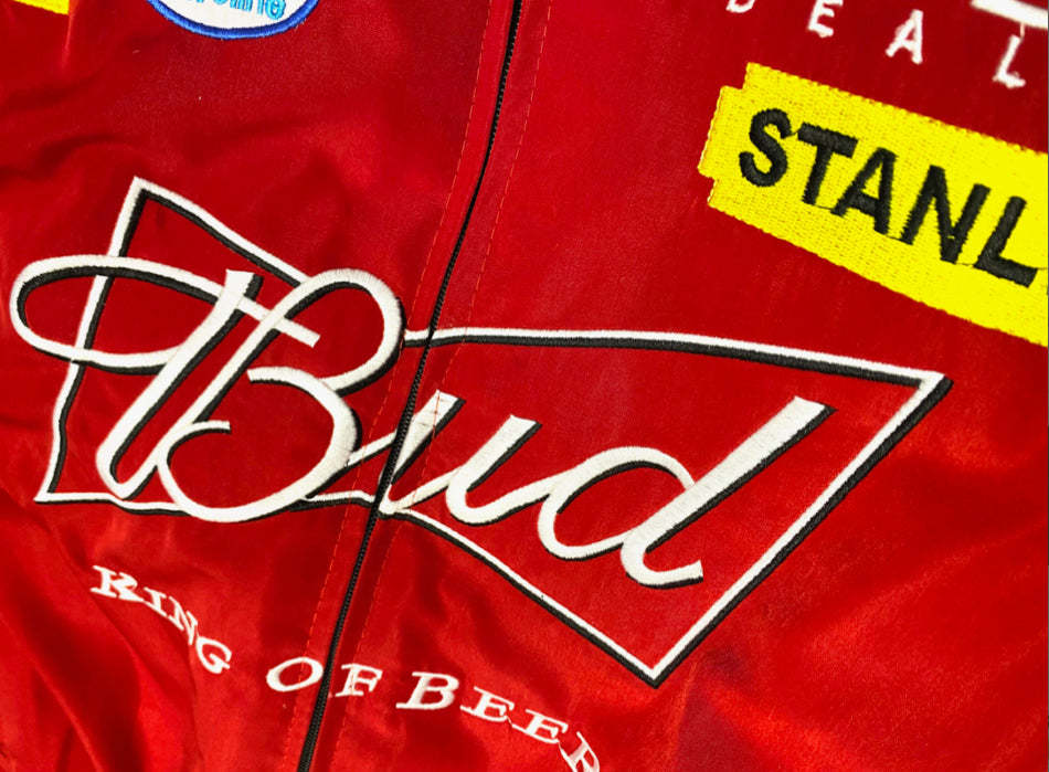 Elevate your style with our Budweiser Racing Jacket, a thrilling embodiment of speed, excitement, and a rich racing heritage. This iconic piece pays tribute to the legendary Budweiser brand and its deep-rooted connection to the world of motorsports. Meticulously crafted with premium materials, the jacket exudes a timeless allure that captures the heart of racing enthusiasts and fashion aficionados alike. The iconic Budweiser logo proudly graces the chest, symbolizing a legacy of passion, adrenaline, and the pursuit of victory. Step into the world of racing legends and embody the thrill and prestige of Budweiser with this exclusive racing jacket. Whether you're a motorsport enthusiast or simply appreciate the fusion of style and speed, this jacket is a captivating statement piece that brings the excitement of the racetrack to life in every detail. Elevate your wardrobe with the Budweiser Racing Jacket, a piece of racing history that celebrates the enduring legacy of one of America's most iconic and exhilarating brands.
