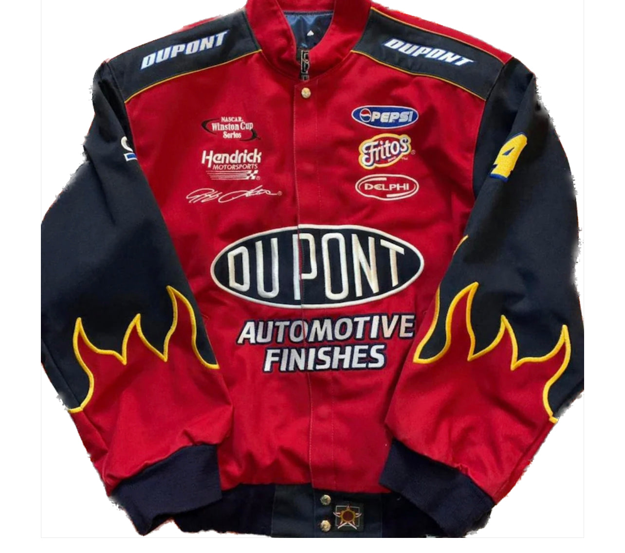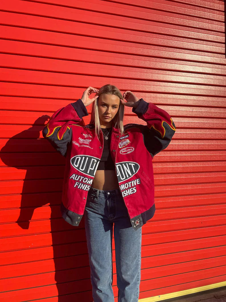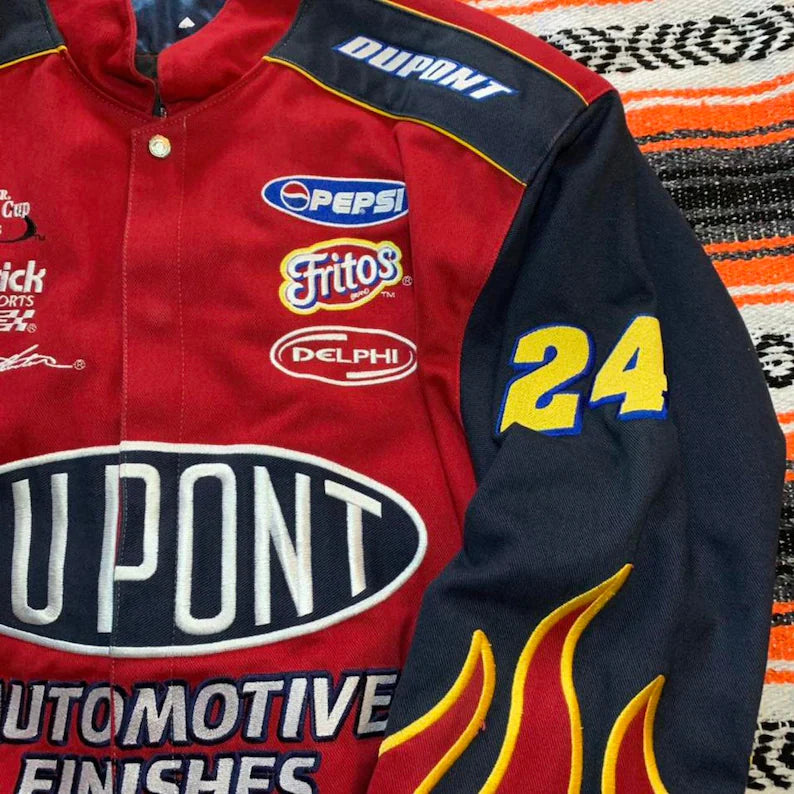 Ignite your style with the DuPont Red Vintage Jacket – a sizzling fusion of fashion and functionality. Celebrating the legacy of DuPont, this iconic piece takes you on a journey of innovation and durability. Meticulously crafted with top-notch materials, the jacket effortlessly combines boldness and comfort, inviting you to embrace the essence of a golden era of industrial prowess. The striking DuPont logo graces the chest, symbolizing a heritage of groundbreaking solutions, resilience, and timeless design. Embrace the spirit of ingenuity and embody the legacy of DuPont with this exclusive vintage jacket. Whether you're an adventurer seeking rugged durability or a trendsetter with an eye for iconic style, this jacket stands as an exceptional statement piece that captures the very essence of strength and sophistication in every stitch. Elevate your wardrobe and unleash your charisma with the DuPont Red Vintage Jacket – a symbol of industrial excellence that sets you apart in a class of your own.